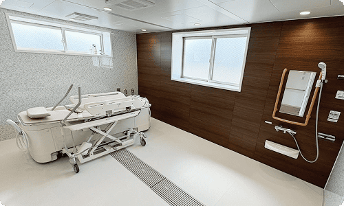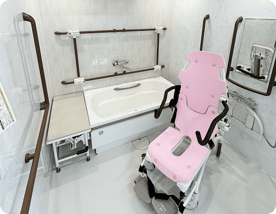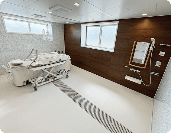 体調や日常生活動作(ADL)に合わせて個浴や機械浴を選ぶことができます。入浴は皆さんの楽しみの一つです。